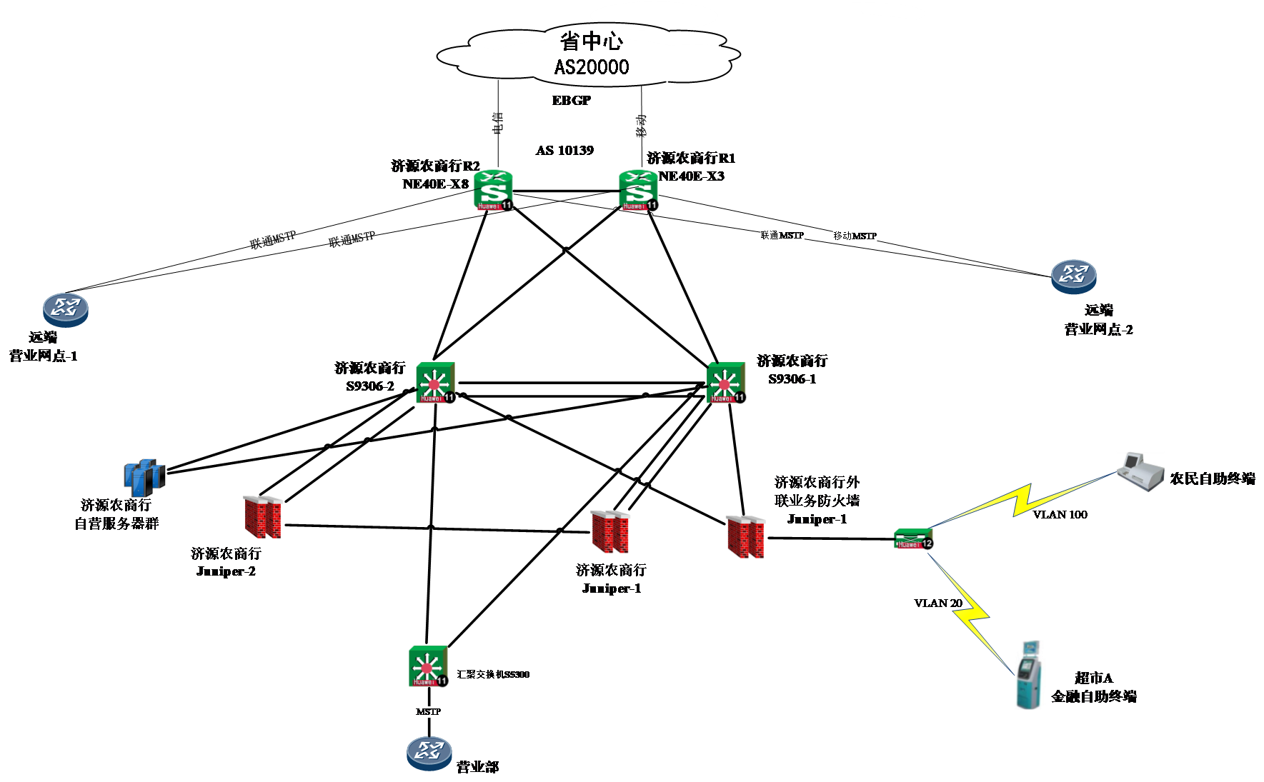 2、優(yōu)化營(yíng)業(yè)網(wǎng)點(diǎn)路由器上行鏈路帶寬,由2M擴(kuò)容到10M MSTP專線;